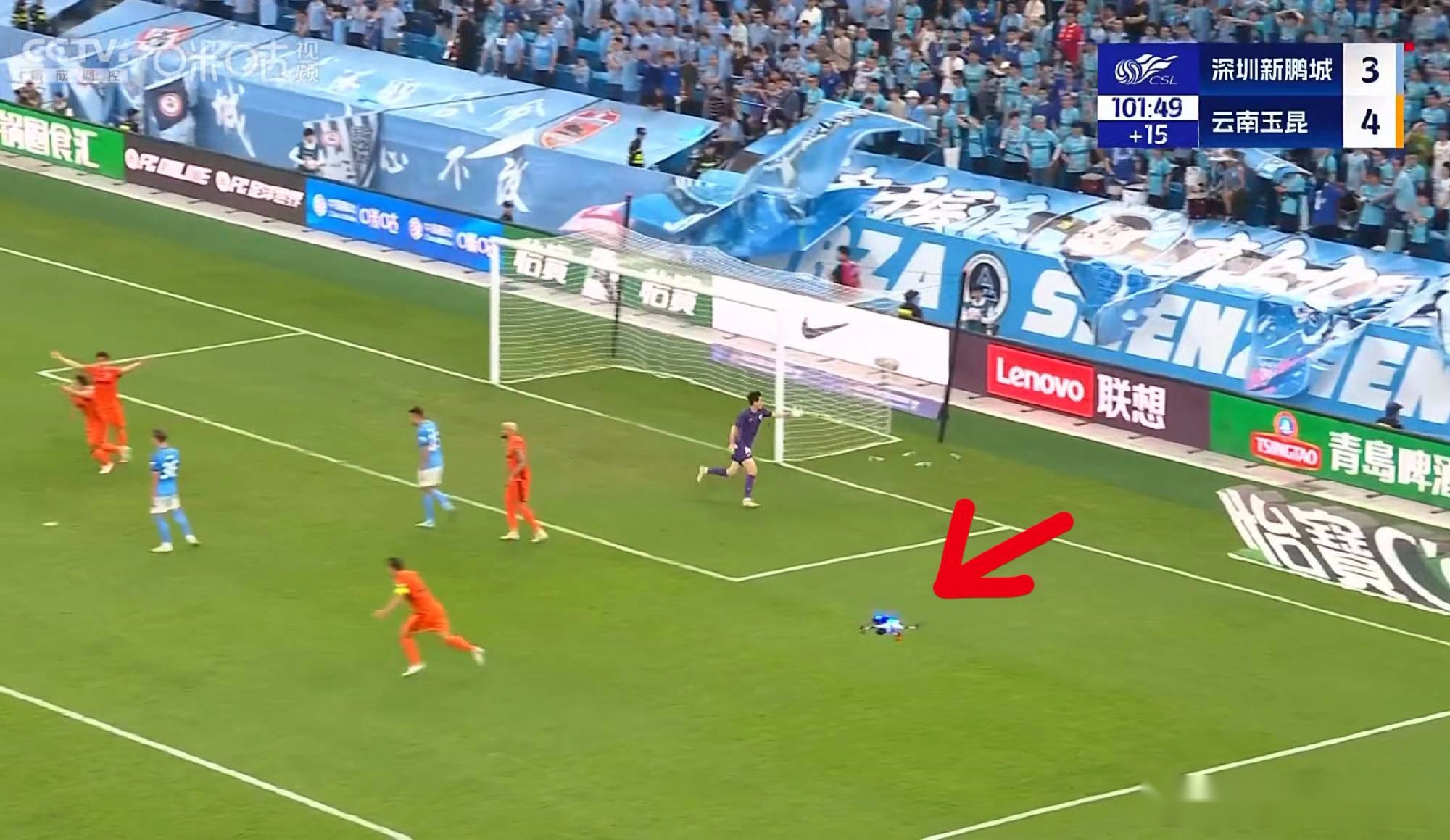 北京时间3月28日晚,在中超第3轮深圳新鹏城主场对阵云南玉昆的比赛中,转播画面显示赛场上突然出现了一架无人机。